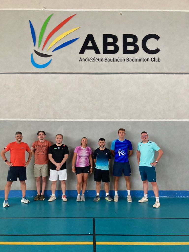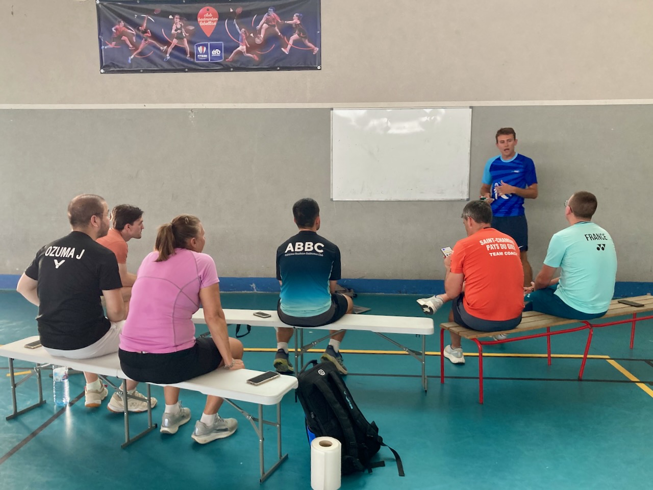 L’équipe est composée de professionnels du badminton, tous encadrants diplômées et salariés de club de la Loire. En ce lundi 30 juin 2025, ils sont 5 autour de Nathalie :