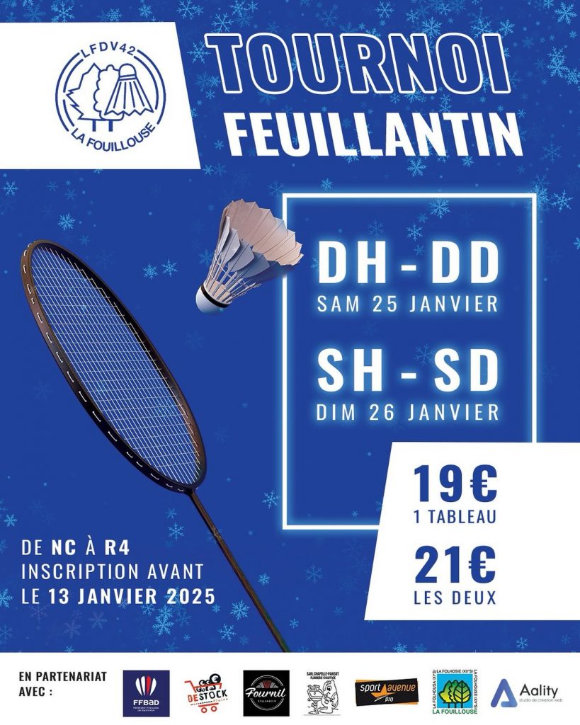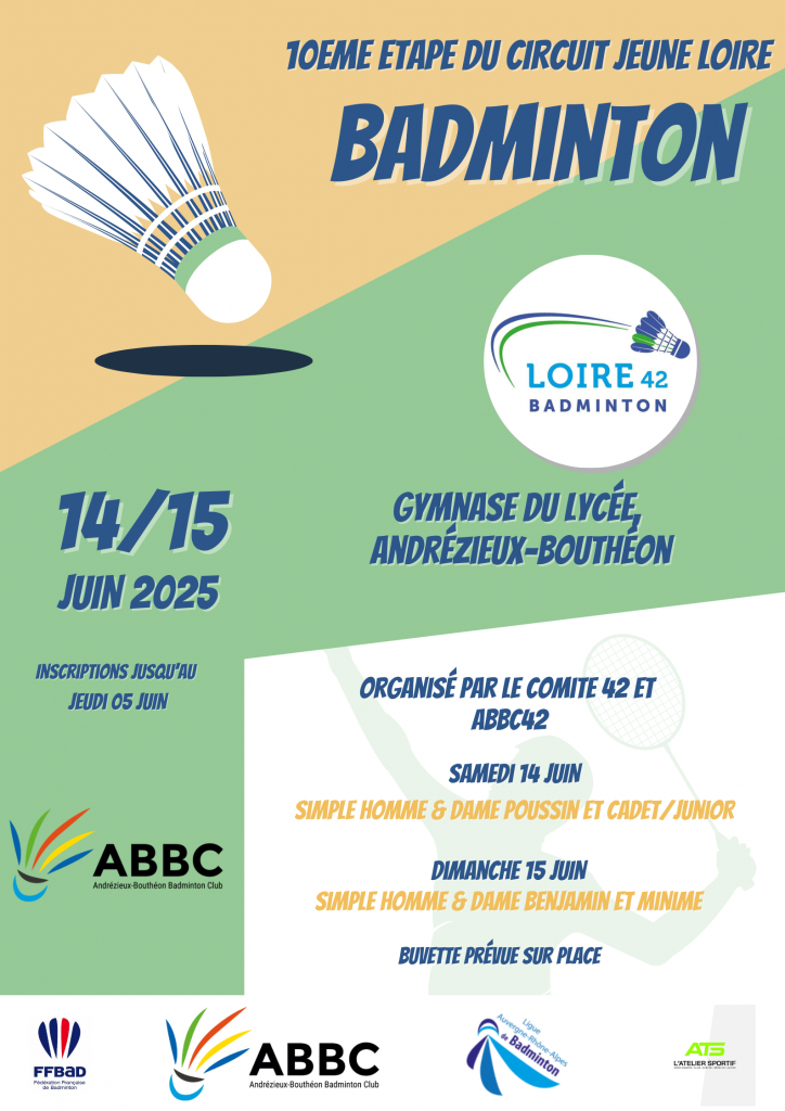 2024-2025 LES TOURNOIS S’AFFICHENT Philippe Solages Posted on 4 juillet 2025 Publié dans Uncategorized Comité de la Loire de badminton, une saison de tournois en affiche. Merci à tous pour votre inspiration, votre créativité. J’espère ne pas en avoir oublié 🤔 … sinon, il faut venir me donner un coup de main au comité, pôle communication. 🤪