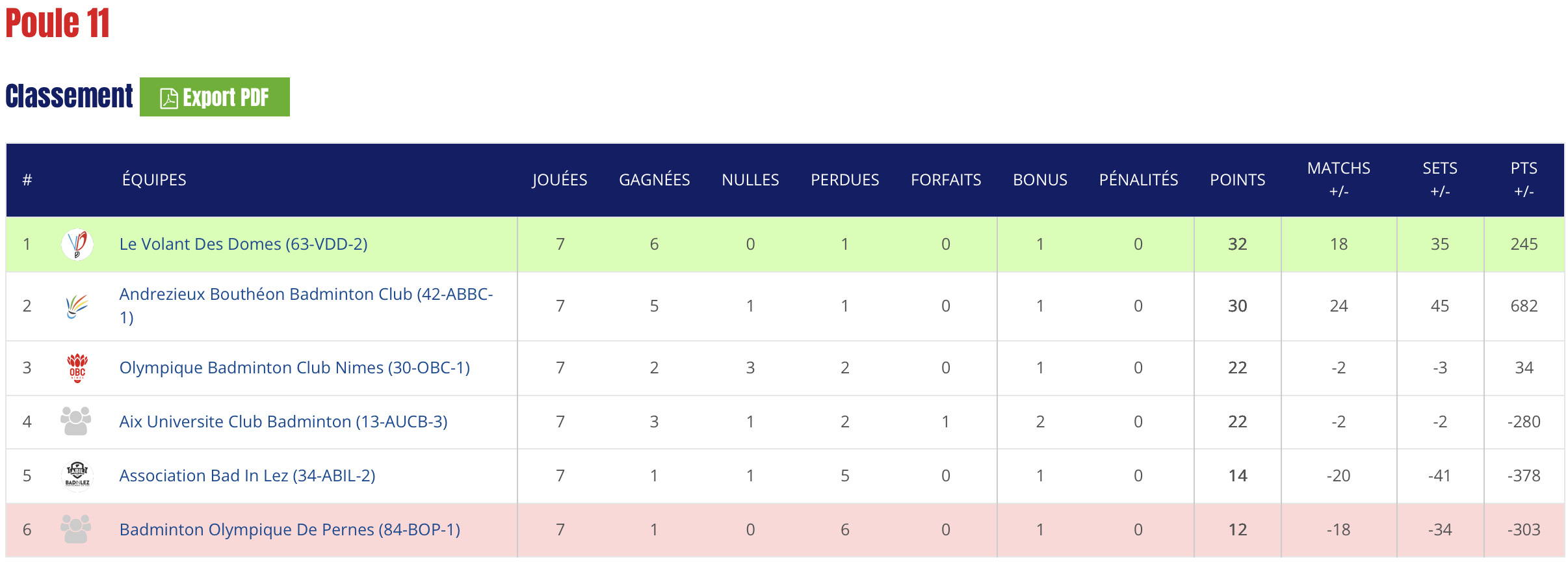 À l’occasion de la 7ème journée du championnat de Nationale 3, l’équipe 1 de Andrézieux-Bouthéon Badminton Club se déplaçait à Aix-en-Provence.