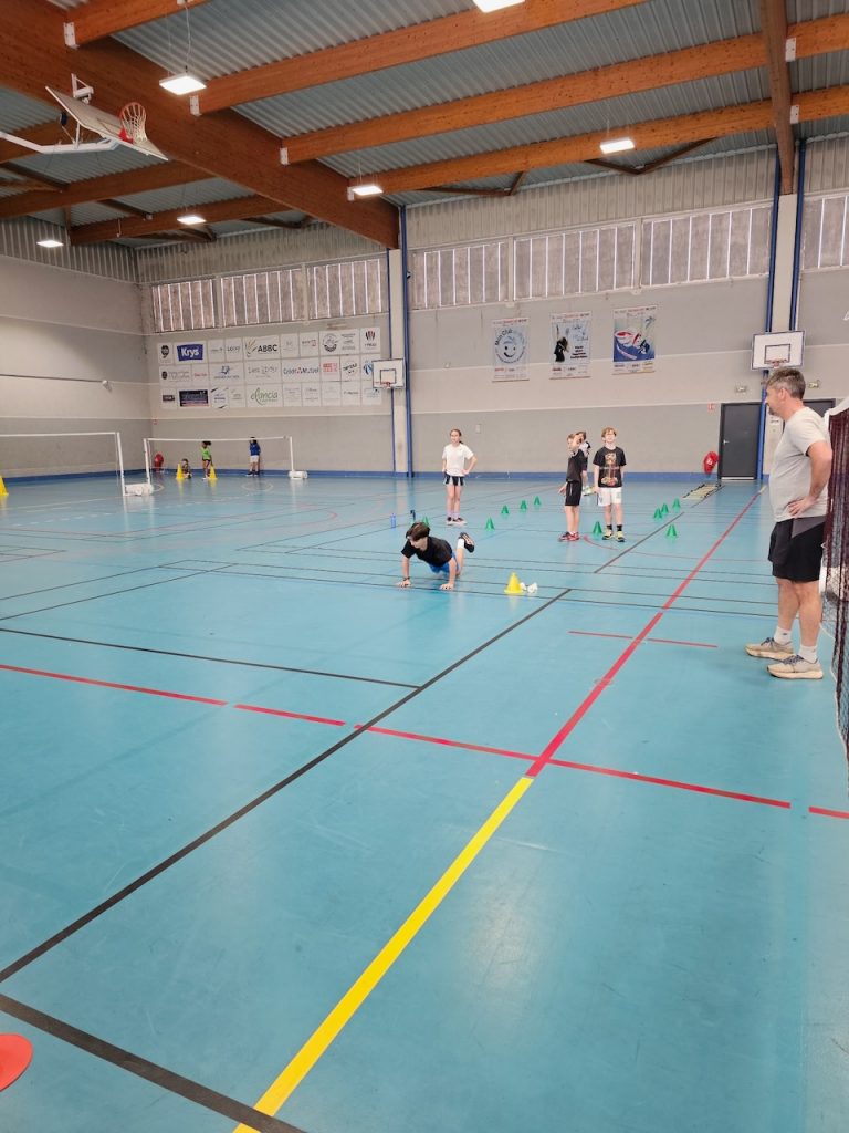 Un groupe rajeuni avec la présence de 8 poussins et 3 poussines. Pendant que les plus grands travaillaient sur le thème du double, les plus jeunes se concentraient sur le déplacement en simple principalement sur la zone arrière.