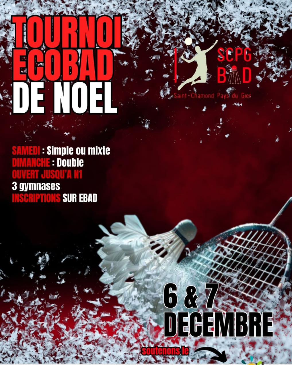 Gymnase du Lycée Andrézieux-Bouthéon Impasse Chateaubriand, Andrézieux-Bouthéon, FranceTournoi par équipe ouvert au N2 à NC Inscription sur Badnet : https://badnet.fr/tournoi/public?eventid=31772