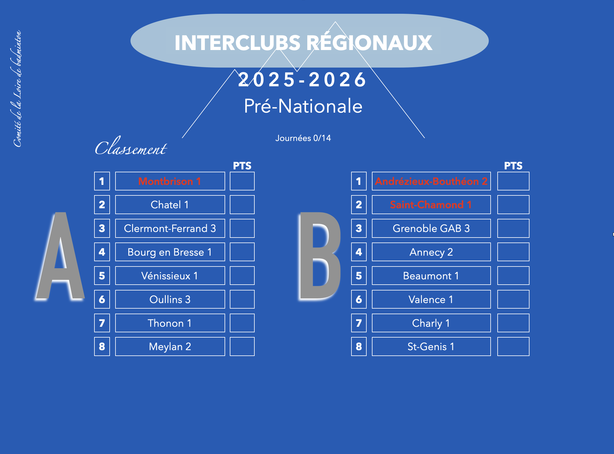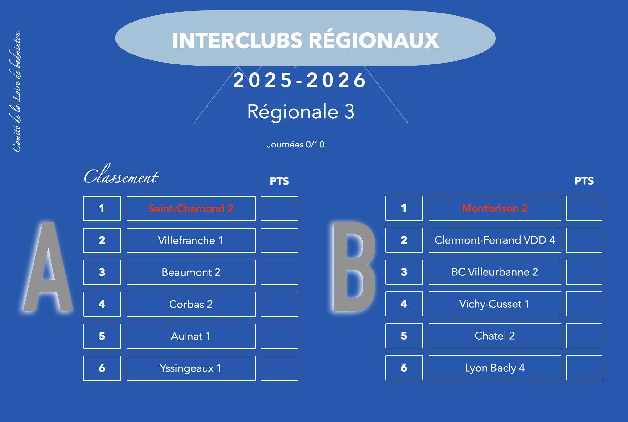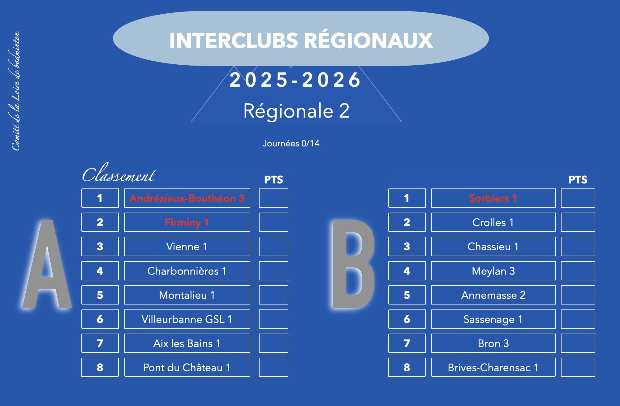 Il y a 9 équipes de la Loire, provenant de 6 clubs, qui participent aux interclubs régionaux